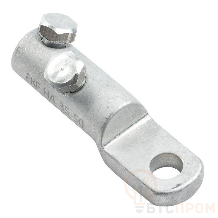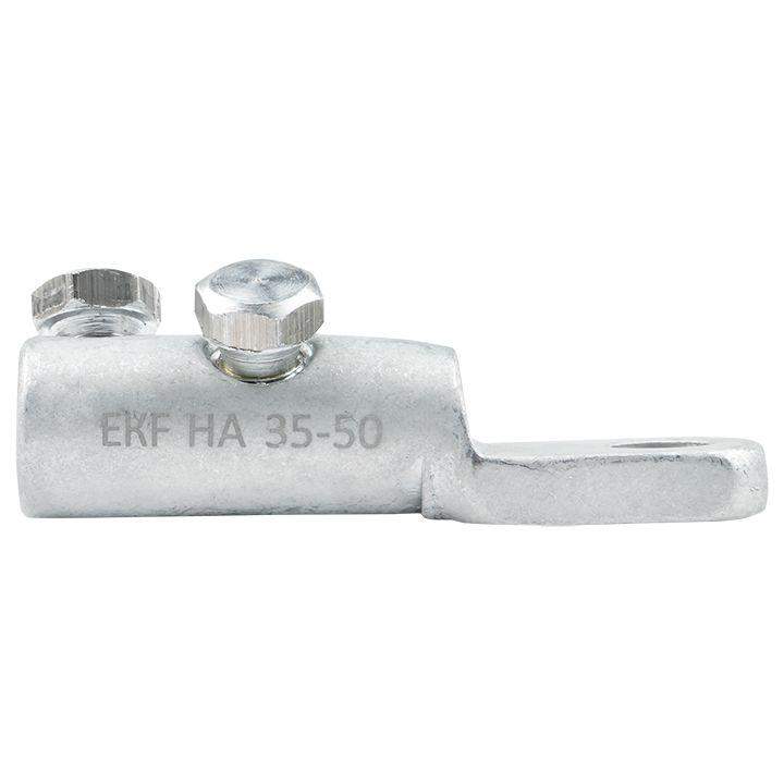 Болтовой наконечник типа НА предназначен для оконцевания предварительно зачищенных от изоляции жил проводов и кабелей, и подключения к клеммам электрооборудования. Подходит для подключения медных и алюминиевых проводов. Эксцентриковое отверстие цилиндрической части, на внутренней поверхности нанесена рифленая накатка и добавлена контактная смазка. Болты со срывной головкой, расположенные под углом друг к другу. При достижении момента, необходимого для создания надежного электрического контакта, происходит срыв головки болта ниже уровня плоскости поверхности наконечника. Наконечник устойчив к ультрафиолетовому и солнечному излучению, высоким и низким температурам, коррозии и агрессивным атмосферным воздействиям.