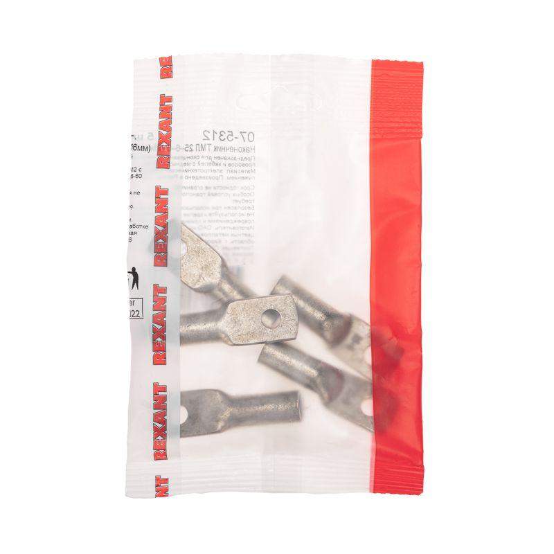 Наконечник предназначен для оконцевания проводов и кабелей с медными и жилами посредством опрессовки для последующего болтового соединения проводника с оборудованием или шиной. Изготавливается по ГОСТ 7386-80. Наконечник выполнен из электротехнической меди марки М2, подвергнутой электролитическому лужению, которое осуществляется путем нанесения слоя олова-висмута (Sn-Bi) на поверхность меди. Это гарантирует надежную защиту контактных соединений, препятствует разрушению основного материала, а также позволяет применять изделие в агрессивной среде. Структура обозначения: Т — Труба — полуфабрикат, из которого изготовлен наконечник; М — Медь — материал, из которого изготовлен наконечник; Л — Луженый — покрытие; 25 — номинальное сечение наконечника, мм2; 6 — диаметр контактного стержня, мм; 8 — внутренний диаметр хвостовика, мм.