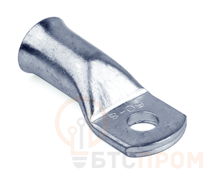 Неизолированный наконечник c развальцованной монтажной гильзой (ТМЛ-Г) предназначен для оконцевания предварительно зачищенных от изоляции медных или алюминиевых проводов и их присоединения к медным клеммам, шинам, зажимам. Материал контактной части – медь М1. Луженое покрытие внешних и внутренних поверхностей с использованием висмута защищает от коррозии и увеличивает проводимость защитного слоя. Особенностями наконечника являются развальцованная на 15% гильза, увеличенный на 8% внутренний диаметр гильзы, возможность подключать кабель с высокой степенью гибкости 6 категории. Наконечник используется для крепления контактной площадки с помощью метиза М16. Сечение проводника – 150 мм2.
