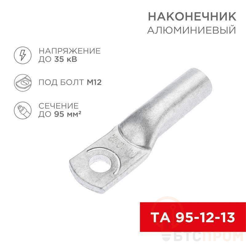 Наконечник алюминиевый ТА 95-12-13 предназначен для оконцовывания посредством опрессовки алюминиевых проводов и кабелей для последующего болтового соединения проводника с оборудованием или шиной. Изделие выполнено из высококачественного прочного алюминия. Благодаря материалу изготовления наконечник отличается легким весом и высокой прочностью. Структура обозначения: Т — Труба — полуфабрикат, из которого изготовлен наконечник; А — Алюминий — материал, из которого изготовлен наконечник; 95 — номинальное сечение наконечника, мм2; 12 — диаметр контактного стержня, мм; 13 — внутренний диаметр хвостовика, мм.