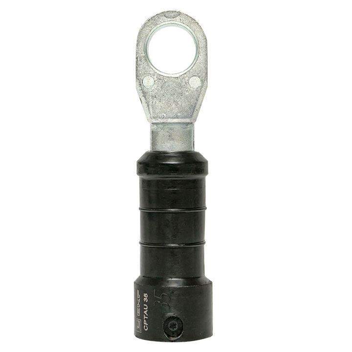 Герметичные изолированные наконечники типа cptau предназначены для соединения СИП с электрооборудованием. Может использоваться для алюминиевых и медных шин. Создают герметичное соединение. Внутренняя часть заполнена контактной смазкой. Монтаж производится методом опрессовки с помощью пресс-клещей. Заглушки разных цветов для визуального определения сечения. Наконечник устойчив к ультрафиолетовому и солнечному излучению, высоким и низким температурам, коррозии и агрессивным атмосферным воздействиям.
