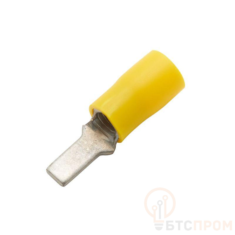 Плоские штыревые наконечники с изолированным фланцем НШПИ предназначены для оконцевания кабеля и проводов с медными жилами сечением от 2.5 до 6 мм2 в электрических цепях переменного и постоянного тока, напряжение до 600 В. Материал контактной части – электротехническая медь, материал изоляции - ПВХ. Луженое покрытие обеспечивает защиту от коррозии. Фланец изолирован. Длина контактного штыря - 9 мм. Цвет - желтый.