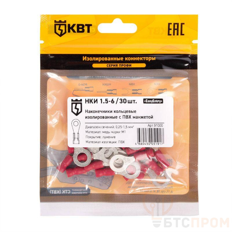Наконечник кабельный кольцевой изолированный НКИ 1.5-6 (уп.30шт) КВТ 91000 фото в каталоге от BTSprom.by