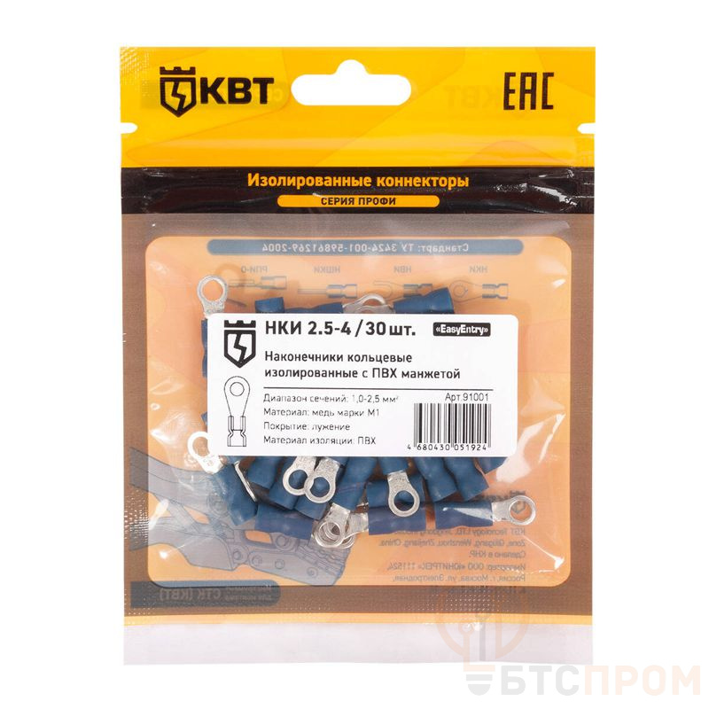 Наконечник кабельный кольцевой изолированный НКИ 2.5-4 (уп.30шт) КВТ 91001 фото в каталоге от BTSprom.by