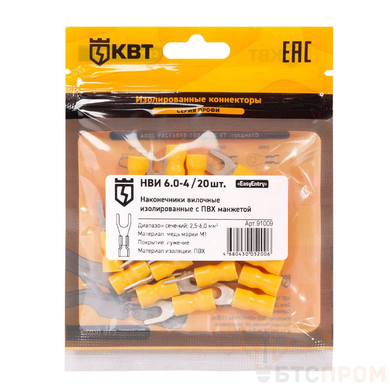 Наконечник кабельный вилочный изолированный НВИ 6.0–4 (уп.20шт) КВТ 91009 фото в каталоге от BTSprom.by