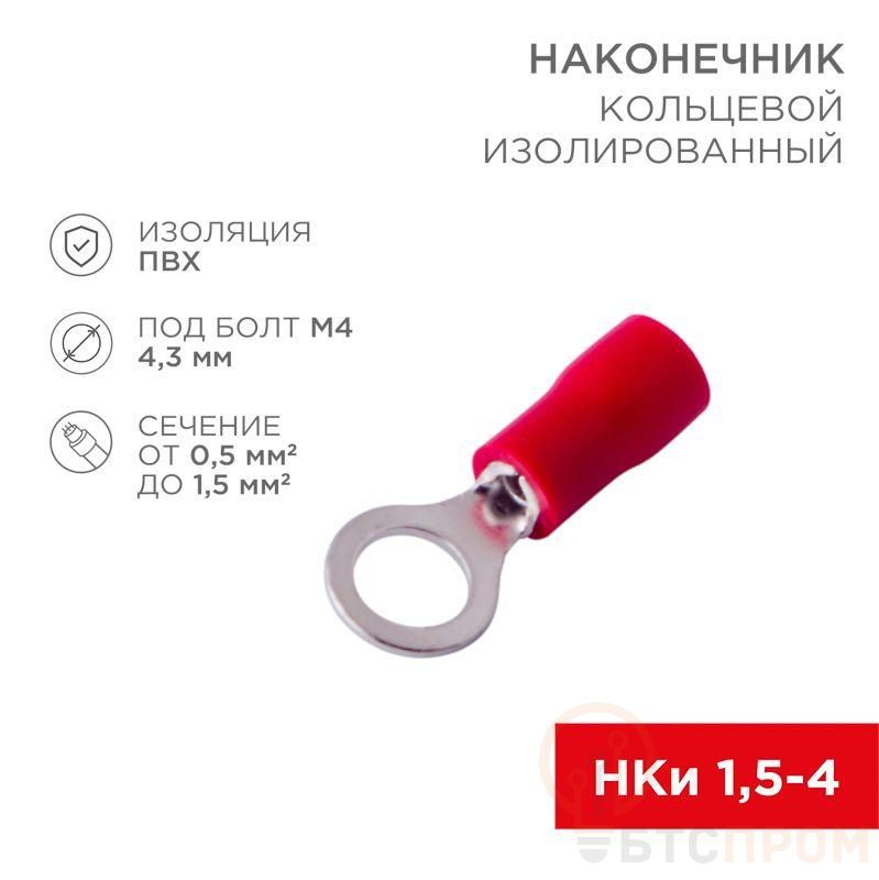 Наконечник кольцевой изолированный (НКИ d4.3мм) 0.5-1.5кв.мм (НКи 1.5-4 / НКи 1.25-4 / RVL1.25-4) красн. (блист.10шт) Rexant 06-0414-A