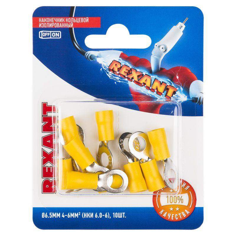 Наконечник кольцевой изолированный (НКИ d6.5мм) 4-6кв.мм (НКи 6.0-6 / НКи5.5-6 / RV5.5-6) желт. (блист.10шт) Rexant 06-0422-A