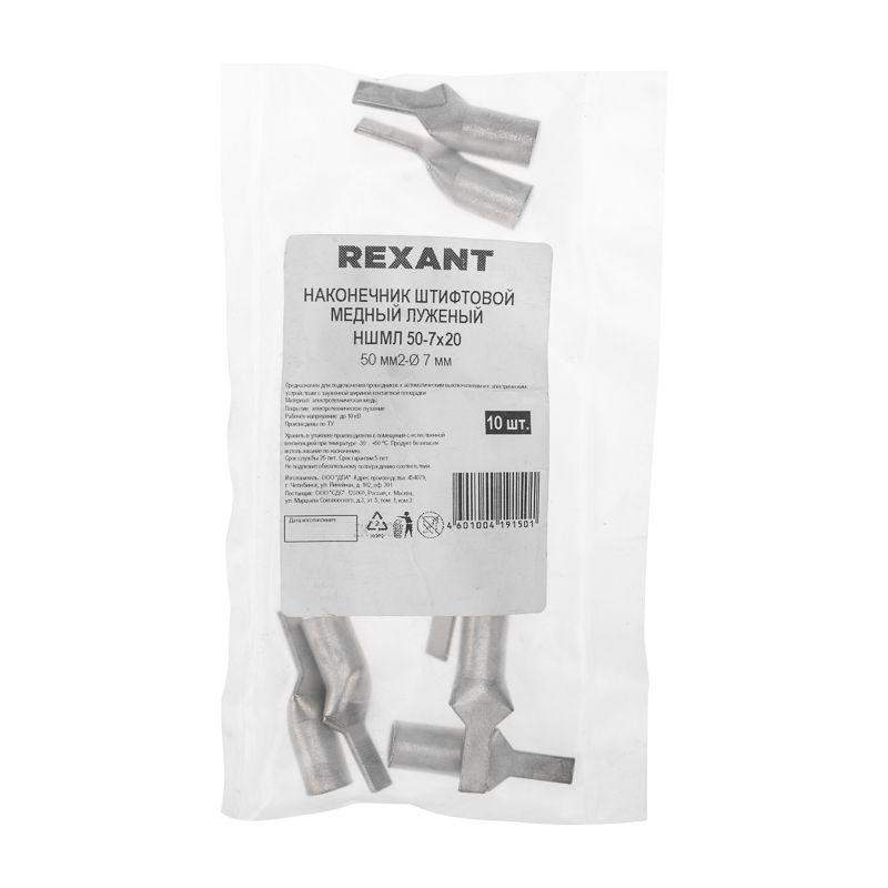 Наконечник штифтовой НШМЛ 50-7х20 (50 мм2 - O 7 мм) REXANT используется для подключения проводников к автоматическим выключателям и к электрическим устройствам с зауженной шириной контактной площадки. Материал изготовления – медь, подвергнутая лужению, что обеспечивает защиту от коррозии, гарантирует высокое качество соединения, а также позволяет сохранить электрическую проводимость наконечника на протяжении длительного времени. Структура обозначения: Н — наконечник; Ш — штифтовой; М — Медь — материал, из которого изготовлен наконечник; Л — Луженая — покрытие; 50 — номинальное сечение наконечника, мм2; 7 — диаметр контактного стержня, мм; 20— длина контактной части, мм.