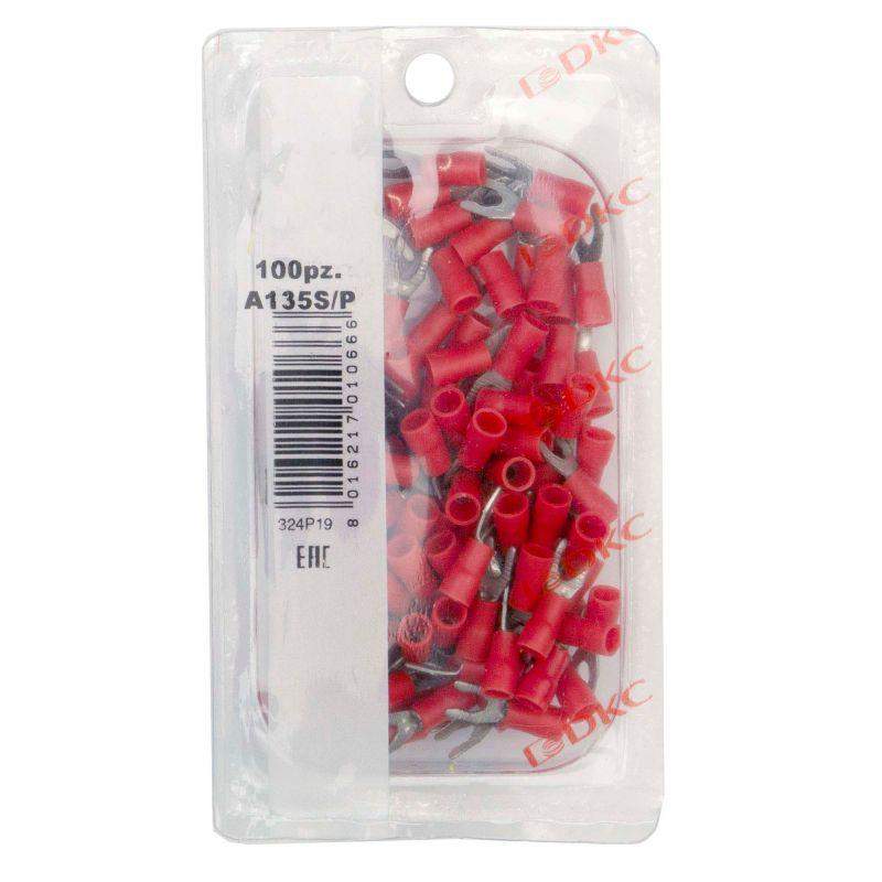 Кабельные наконечники – это специальные аксессуары, которые используются для простого подсоединения медных жил к оборудованию и механизмам и подключения индикаторов. Они также могут использоваться в низковольтных цепях. Изолированные наконечники обжимаются непосредственно через изоляцию, поэтому ДКС использует для изоляции только качественные материалы. Наконечники соединяются методом «вилка-розетка» («папа-мама»). Материал контактной части – медь. Наконечник с изолированным фланцем имеет форму вилки. Луженое покрытие обеспечивает защиту от коррозии. Номинальное поперечное сечение - 0,25 - 1,5 мм2. Цвет изоляции - красный.
