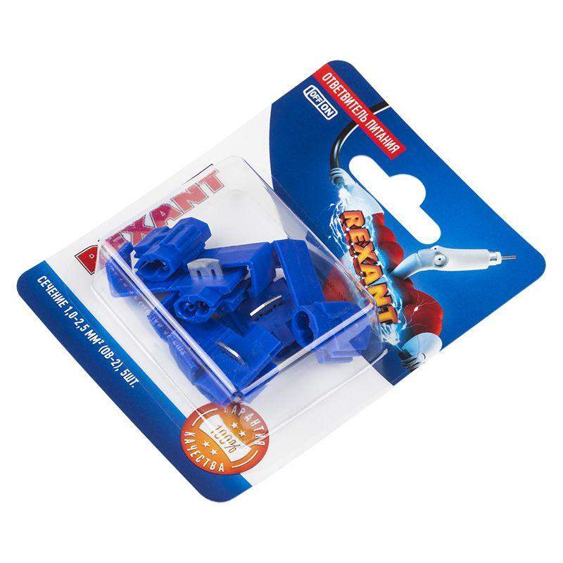 Ответвитель 1.0-2.5 мм2 синий REXANT предназначен для ответвления электроэнергии от токонесущего провода с последующей подачей питания на дополнительное электрооборудование. Такой, применяемый в электрике и радиоэлектронике, ответвитель представляет собой пластиковый корпус, внутри которого расположен контактный нож. Монтаж осуществляется в считанные секунды: прокладываем провода в корпус (без предварительной зачистки); небольшим усилием на крышку, в ходе которого контактный нож прорезает изоляцию вложенных проводов, защелкиваем ее. После защелкивания соединение готово к эксплуатации. Технические характеристики: - корпус ответвителя изготовлен из поливинилхлорида (ПВХ); - врезные контакты изготовлены из латуни с электролитическим защитным покрытием; - сечение применяемых проводов в диапазоне 1.0-2.5мм2; - цвет синий; - Материал контактов: луженая латунь; - Максимально допустимый: 18 А/250В.