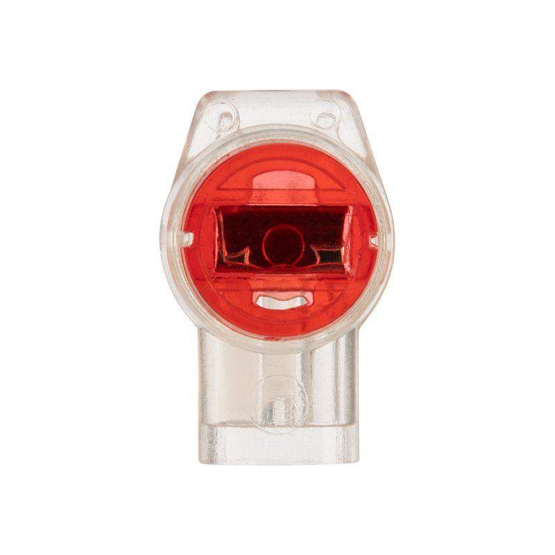 Изолированный соединитель для жил применяется для соединения различных проводов с диаметром жилы от 0,4 до 0,9мм между собой. Производить предварительную зачистку изоляции не требуется, что экономит время и позволяет быстро выполнить работу. Устройство оснащено кнопкой, внутри которой располагается контактная пластина. При нажатии на кнопку пластина прорезает провода, тем самым соединяя их. Внутри пластикового корпуса находится гидрофобный (влагоотталкивающий) гель, который покрывает сращиваемые контакты после обжима и защищает их на протяжении всего срока службы от влаги и образования коррозии. Для обжима необходимо использовать специальный инструмент или плоскогубцы, например 12-4612-4.