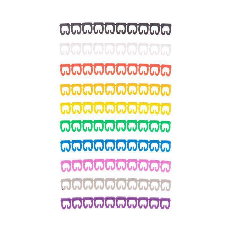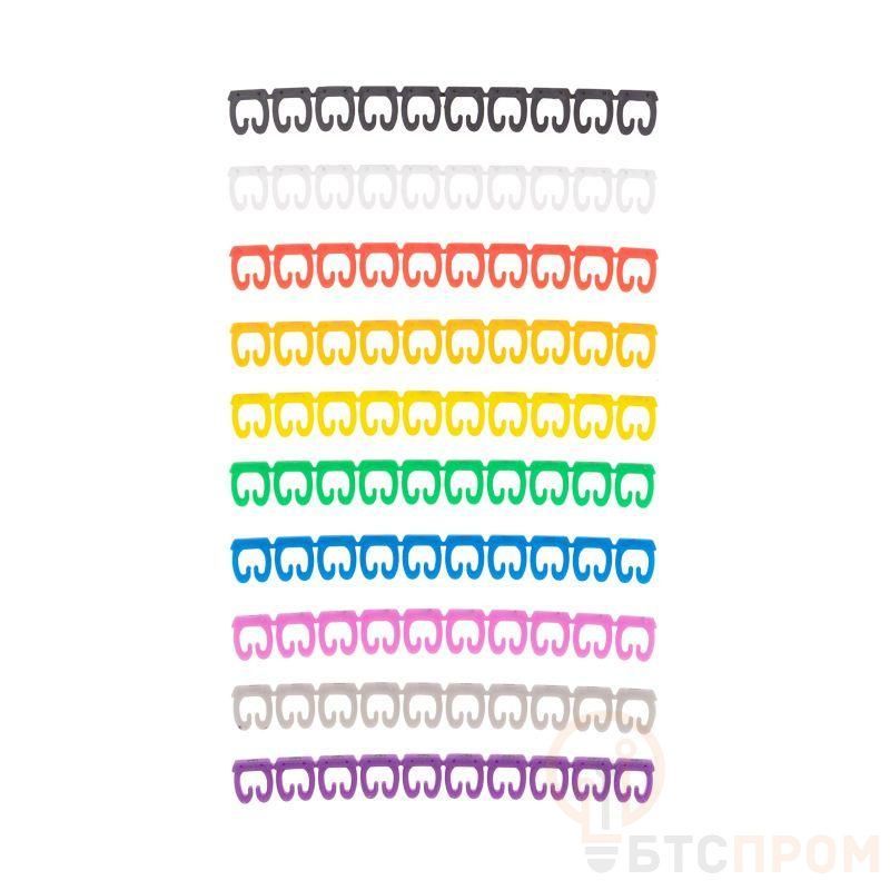 Маркеры с цифрами от 0 до 9 предназначены для маркировки проводов и кабелей в распределительных щитах. Облегчают идентификацию проводов в процессе монтажа и демонтажа проводки, помогают определить группу кабелей и источников при обслуживании и диагностике. Маркеры изготавливаются из эластичного и негорючего поливинилхлорида. Рабочая температура не должна превышать 85 °C. Благодаря специальной эластичной форме каждый маркер надежно фиксируется на проводах с сечением от 4 до 6 мм. Предусмотрено отверстие для проводника. Каждая цифра имеет свой цвет: черный, красный, оранжевый, желтый, зеленый, синий, фиолетовый, серый, белый, розовый. Маркеры соединяются между собой с помощью зубцов и пазов.