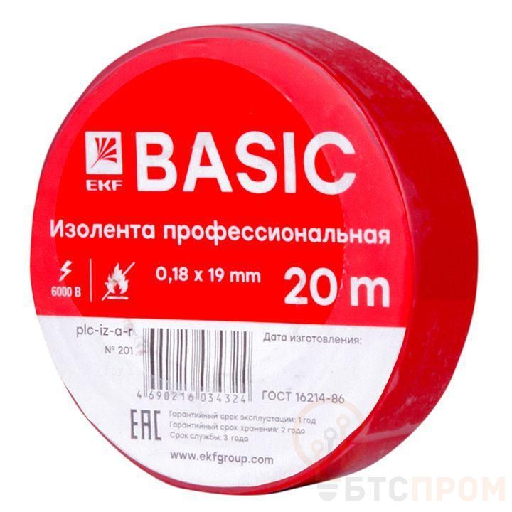 Изолента класс А 0.18х19мм (рул.20м) красн. EKF plc-iz-a-r фото в каталоге от BTSprom.by