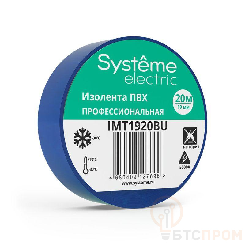 Изолента Systeme Electric серии MultiSet в синем цвете предназначена для изоляции электрических соединений и проводов. - Наличие большого выбора цветов позволяет использовать ее при маркировке проводов. - Поставляется в рулонах по 20 м и имеет ширину 19 мм при толщине 0,13 мм. - Температура эксплуатации: -30…+70°С - Незаменима при использовании в быту.