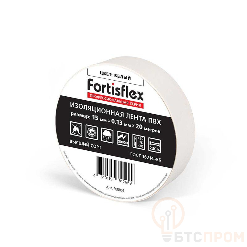 Изолента ПВХ 15х0.13х20 бел. Fortisflex 90804 фото в каталоге от BTSprom.by