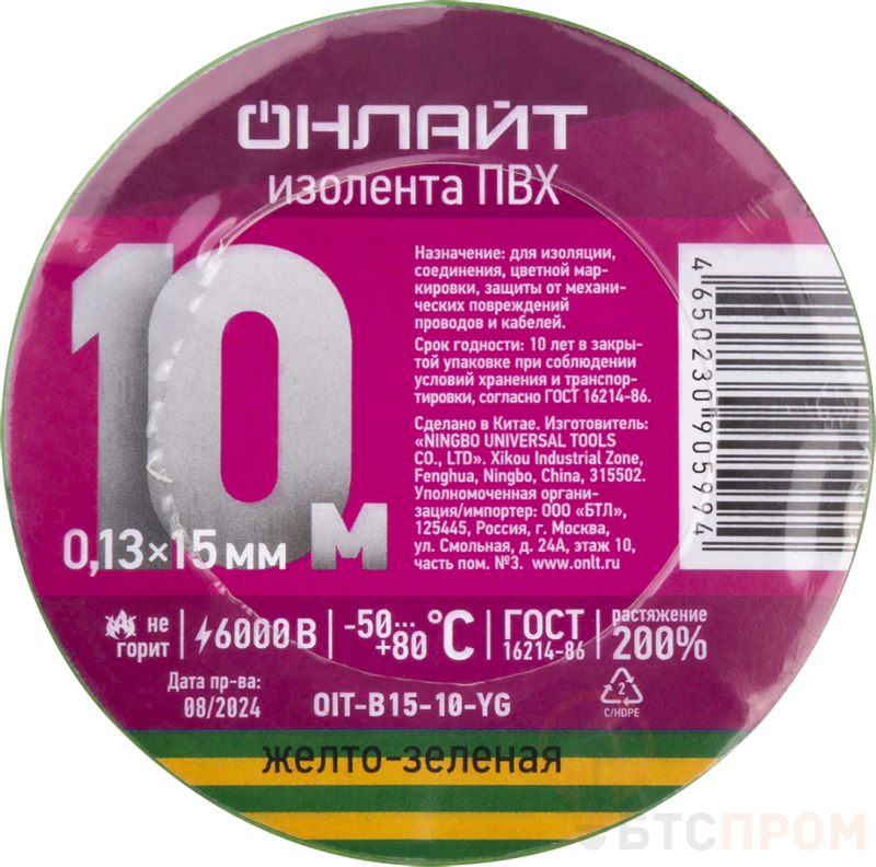изолента пвх 61 879 oit-b15-10/y желт. онлайт 61879 от BTSprom.by
