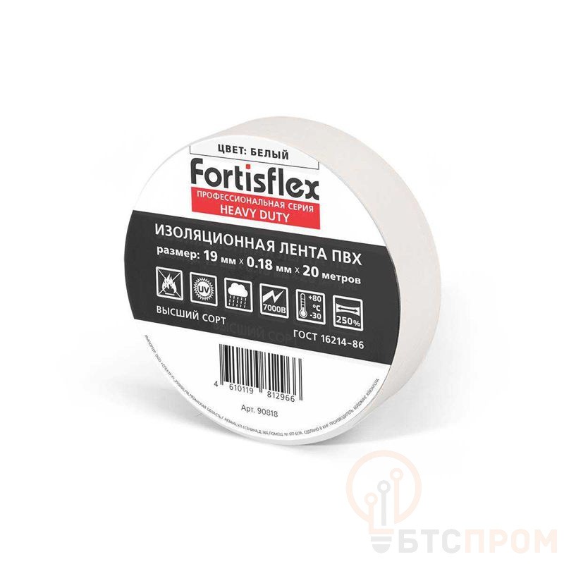 Изолента ПВХ Heavy Duty 19х0.18х20 бел. Fortisflex 90818 фото в каталоге от BTSprom.by