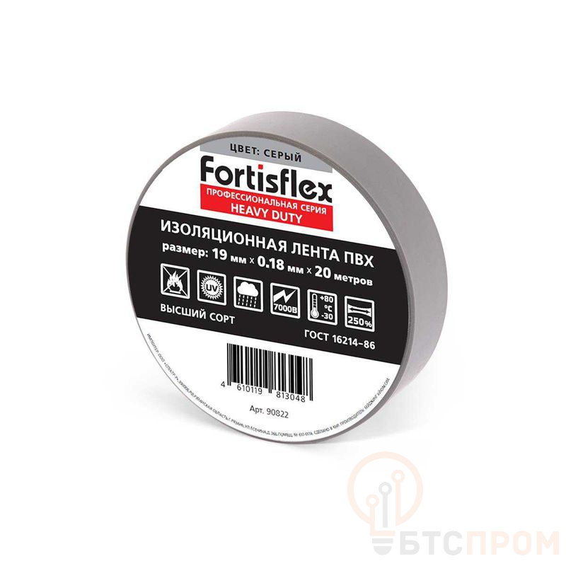 Изолента ПВХ Heavy Duty 19х0.18х20 сер. Fortisflex 90822 фото в каталоге от BTSprom.by