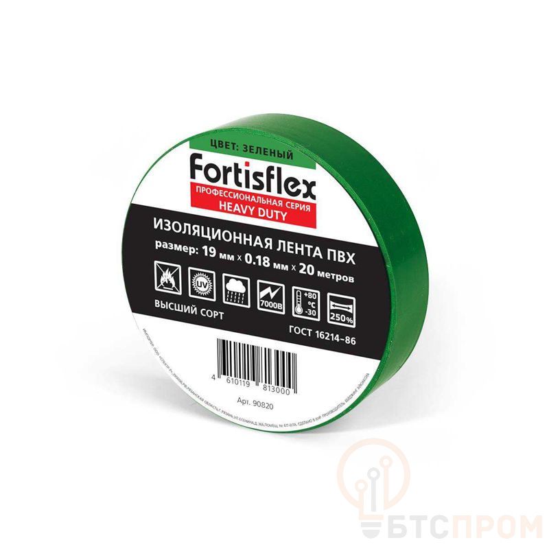Изолента ПВХ Heavy Duty 19х0.18х20 зел. Fortisflex 90820 фото в каталоге от BTSprom.by