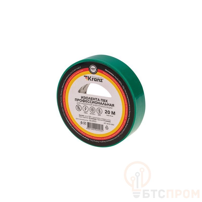 –Изолента ПВХ профессиональная 0.18х19мм 20м зел. Kranz KR-09-2803