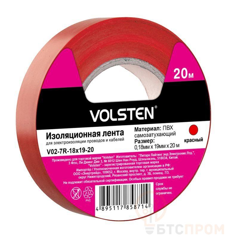 Для изоляции электрического кабеля при его соединении или повреждении изоляционного покрытия. Изолента, цвет - красный, ширина - 19мм, толщина - 0,18мм, длина - 20м, рабочая температура -20…+85'C