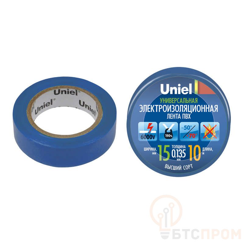 Лента изоляционная UIT-135P 0.135х15мм 10м от бренда Uniel — это высококачественный электротехнический материал, предназначенный для надежной изоляции и маркировки проводов и кабелей. Основа ленты — ПВХ (поливинилхлорид), обеспечивающий отличные диэлектрические свойства, эластичность и долговечность.