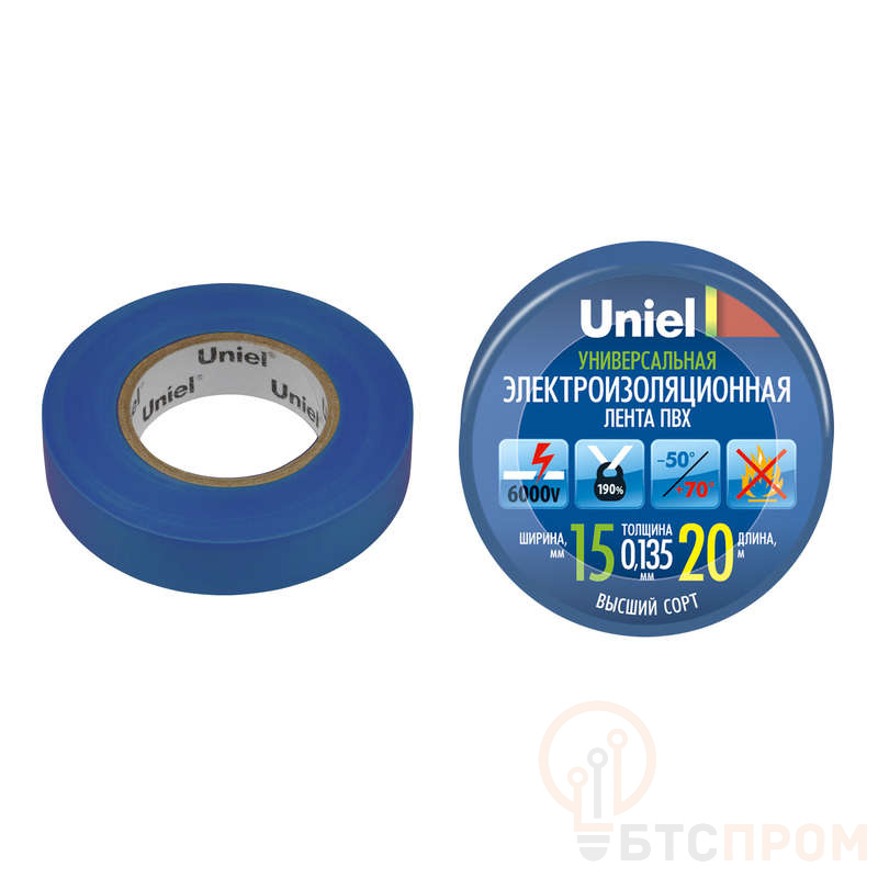 Лента изоляционная 0.135х15мм 20м UIT-135P 20/15/01 BLU син. Uniel 04485 фото в каталоге от BTSprom.by