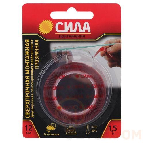 Лента клейкая сверхпрочная монтажная SDST-1215TR двустор. пеноакрил.12мм х 1.5м прозр. СИЛА Б0046371