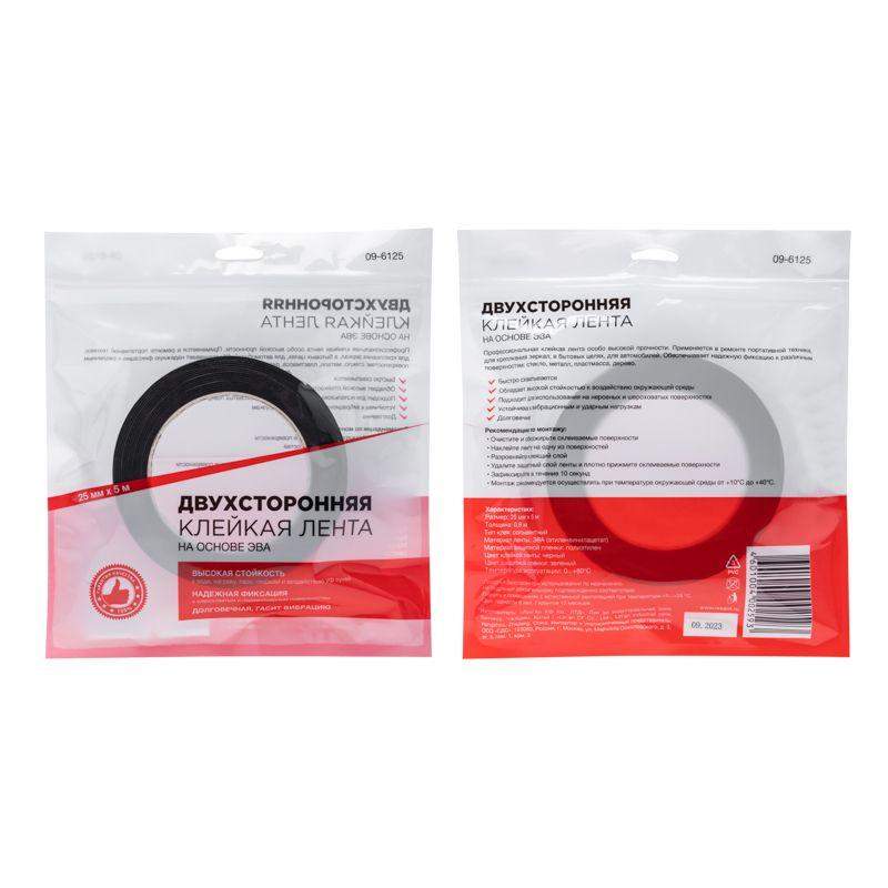 Двухстороння клейкая лента на основе ЭВА (вспененного полиэтилена) применяется для склеивания различных по структуре поверхностей: благодаря вспененной основе лента повторяет форму рельефа и заполняет его неровности. Полиэтиленовая лента отличается высокой адгезией, поэтому хорошо фиксирует материалы на длительный срок. Максимальная величина адгезии достигается через сутки после склеивания предметов. Устойчива к ультрафиолетовому излучению, маслам, пластификаторам и растворителям. Обладает хорошей прочностью на разрыв и растяжение.