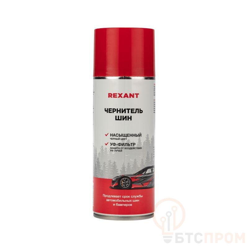Чернитель шин REXANT – это отличное средство для восстановления и защиты цвета автомобильных шин. Создает полимерную плёнку, предотвращающую повторное загрязнение, также обладает антистатическими свойствами, защищает от пыли и УФ-излучения. Восстанавливает структуру обработанной поверхности – проникает в микротрещины, устраняя мелкие дефекты. Предохраняет резину от образования трещин. Позволяет использовать средство как на влажных, так и сухих поверхностях.