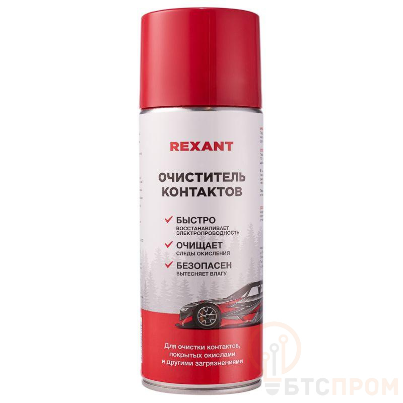 Очиститель контактов REXANT – Предназначен для очистки контактов, покрытых окислами и решения проблем в электрических цепях, вызванных не только коррозией, но и топливными и прочими загрязнениями, формирующими на поверхности контактов низкоэлектропроводные покрытия. Быстро испаряется. Безопасен для резины, винила и пластика. Не содержит токсичного перхлорэтилена. Специальная аэрозольная головка формирует мощную струю направленного действия. Перед применением следует энергично встряхнуть баллон в течение 1-2 минут и обильно нанести средство на обрабатываемые контакты для достижения эффекта промывки. При сильных загрязнениях рекомендуется повторное применение. Излишки очистителя, окислы и грязь следует удалить мягкой ветошью. Перед подключением контактов рекомендуется дать очистителю испариться. Перед использованием необходимо отключить электрические устройства от источников питания.