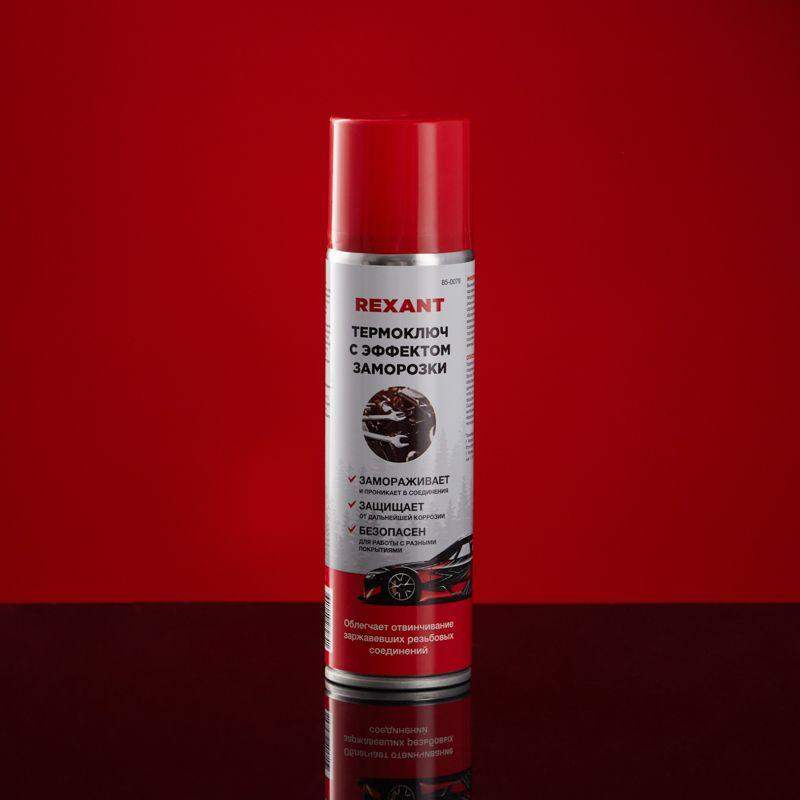 Высокоэффективное средство предназначено для отвинчивания заржавевших резьбовых соединений. Термоключ с эффектом заморозки разрушает слои продуктов коррозии за счет усадочной деформации при резком кратковременном понижении температуры обрабатываемых деталей и узлов (до -30°С). Предотвращает дальнейшую коррозию. Благодаря образующимся порам и трещинам ржавчина моментально пропитывается минеральным маслом, которое содержится в составе. Быстро проникая в труднодоступные места и зазоры термоключ существенно облегчает разборку любых элементов крепежа.