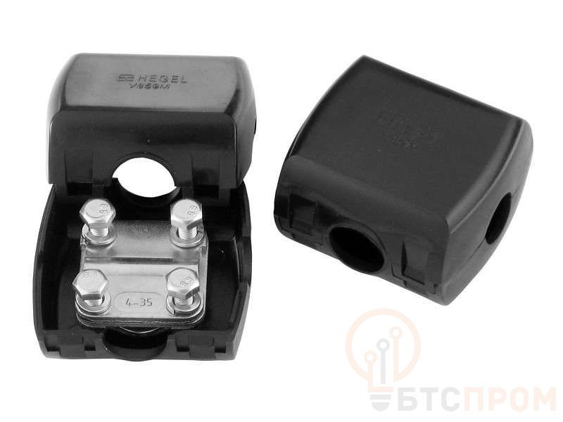 Сжим У859 М HEGEL – монтажный элемент, аксессуар. Габариты: 68 x 64 x 45 мм. Применяется при монтаже магистрального провода сечением 50-70 кв.мм и ответвительного сечением 4-35 кв.мм.