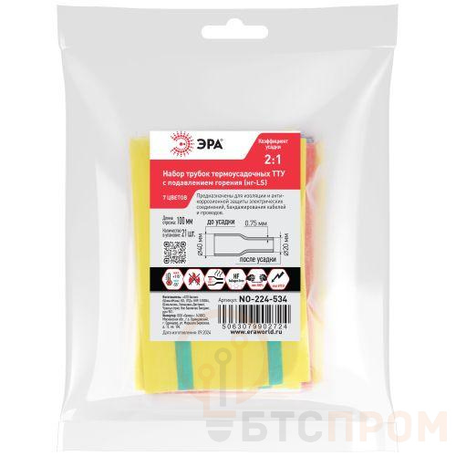 Общепромышленные термоусадочные трубки ТТУ нг-LS в розничных наборах представляют собой универсальное решение для изоляции и маркировки. Трубки изготавливаются методом экструзии из специального состава полиолефина с добавлением антипиренов, после чего нарезаются на отрезки по 10 см. Коэффициент термоусадки 2:1 обеспечивает надежную фиксацию и защиту, а широкая цветовая гамма и разнообразие диаметров позволяют подобрать оптимальный вариант для различных задач. Подходят для бытового применения, т.к. в состав наборов входят трубки разных цветов. <strong>Области применения:</strong> - восстановление повреждений изоляции и оболочек кабелей и проводов; - герметизация поверхностей и электрических соединений кабелей и проводов; - бандажирование и маркировка проводов; - создание антикоррозийных защитных и декоративных покрытий. Рекомендуется применять инструмент для монтажа - строительные фены, пропановые или бутановые горелки. <strong>Параметры изделия:</strong> - Материал: полиолефин, не поддерживает горение - Рабочее напряжение Ue: 690 B - Температура усадки: +80° / +110 С ° - Температура эксплуатации: -55° / +115 °C - Относительное удлинение при разрыве: min 300 % - Прочность на растяжение: не менее 15 Мпа - Электрическая прочность: не менее 15 кВ/мм - Удельное объемное электрическое сопротивление: 10<sup>14</sup> Ом?см - Не содержит галогенов «HF - halogen free»