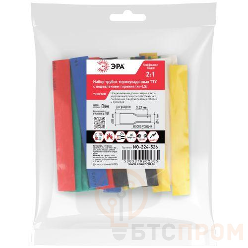 Общепромышленные термоусадочные трубки ТТУ нг-LS в розничных наборах представляют собой универсальное решение для изоляции и маркировки. Трубки изготавливаются методом экструзии из специального состава полиолефина с добавлением антипиренов, после чего нарезаются на отрезки по 10 см. Коэффициент термоусадки 2:1 обеспечивает надежную фиксацию и защиту, а широкая цветовая гамма и разнообразие диаметров позволяют подобрать оптимальный вариант для различных задач. Подходят для бытового применения, т.к. в состав наборов входят трубки разных цветов. <strong>Области применения:</strong> - восстановление повреждений изоляции и оболочек кабелей и проводов; - герметизация поверхностей и электрических соединений кабелей и проводов; - бандажирование и маркировка проводов; - создание антикоррозийных защитных и декоративных покрытий. Рекомендуется применять инструмент для монтажа - строительные фены, пропановые или бутановые горелки. <strong>Параметры изделия:</strong> - Материал: полиолефин, не поддерживает горение - Рабочее напряжение Ue: 690 B - Температура усадки: +80° / +110 С ° - Температура эксплуатации: -55° / +115 °C - Относительное удлинение при разрыве: min 300 % - Прочность на растяжение: не менее 15 Мпа - Электрическая прочность: не менее 15 кВ/мм - Удельное объемное электрическое сопротивление: 10<sup>14</sup> Ом?см - Не содержит галогенов «HF - halogen free»