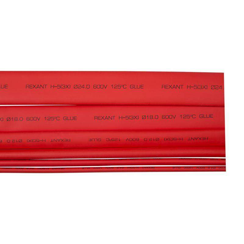 –Трубка термоусадочная двустенная клеевая 24/8 (3:1) 1м красн. Rexant 26-2404