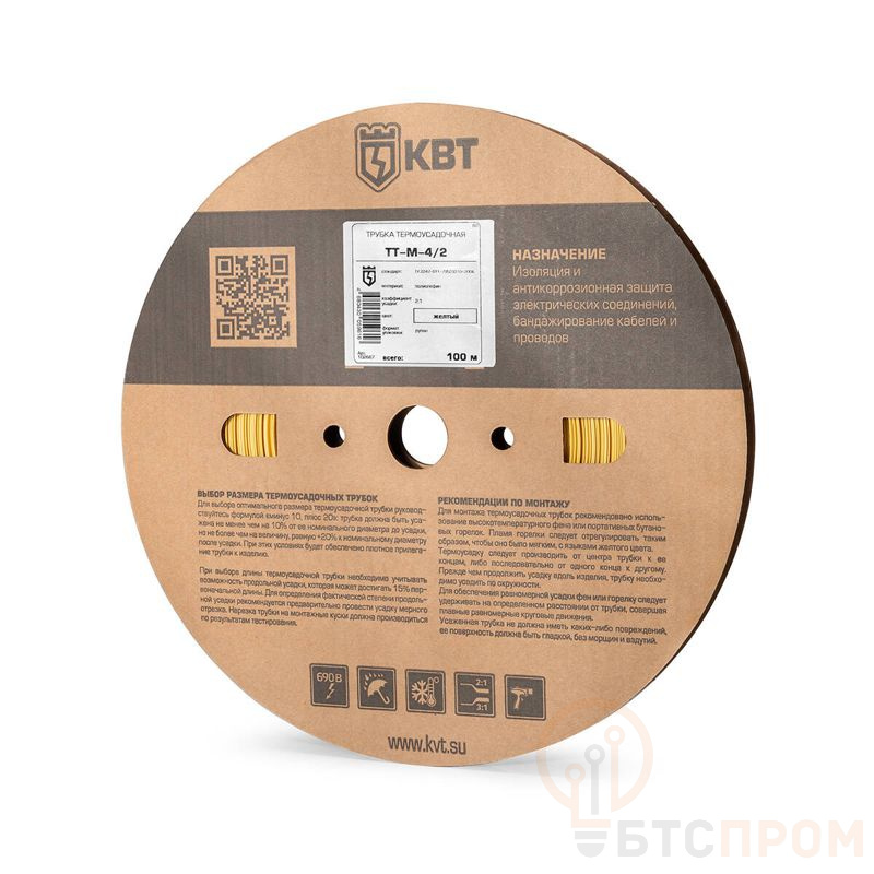 Термоусадочная трубка ТТ-М-4/2 желтая от бренда КВТ – это надежный изоляционный материал для маркировки и защиты электрических соединений. Исходный диаметр трубки составляет 4 мм, после усадки под воздействием тепла (фена или зажигалки) он уменьшается до 2 мм, обеспечивая плотное облегание провода или клеммы.