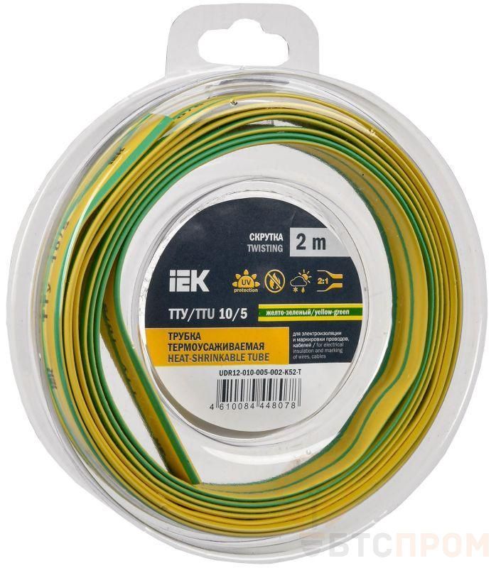 –Трубка термоусадочная ТТУ нг-LS 10/5 желт./зел. (уп.2м) IEK UDR12-010-005-002-K52-T