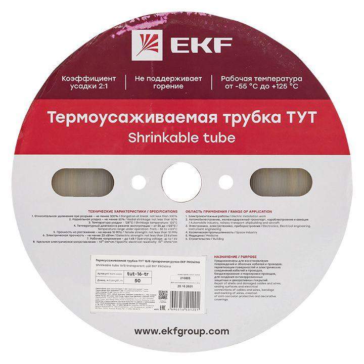 Трубка термоусадочная ТУТ 16/8 прозр. PROxima (уп.50м) EKF tut-16-tr фото в каталоге от BTSprom.by