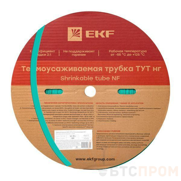 Трубка термоусадочная ТУТ нг 12/6 зел. (уп.100м) EKF tut-12-j фото в каталоге от BTSprom.by