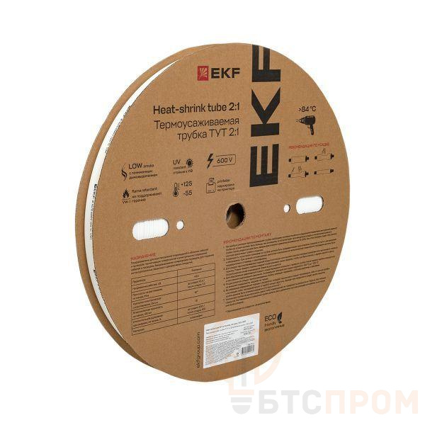 Трубка термоусадочная ТУТ нг 16/8 бел. (уп.100м) EKF tut-16-w фото в каталоге от BTSprom.by
