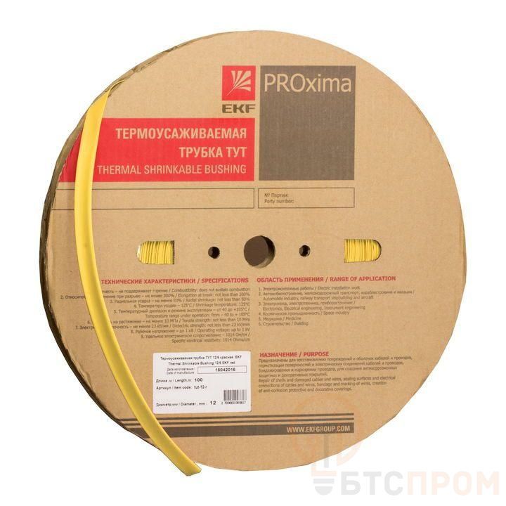 Трубка термоусадочная ТУТ нг 16/8 желт. (уп.100м) EKF tut-16-y фото в каталоге от BTSprom.by