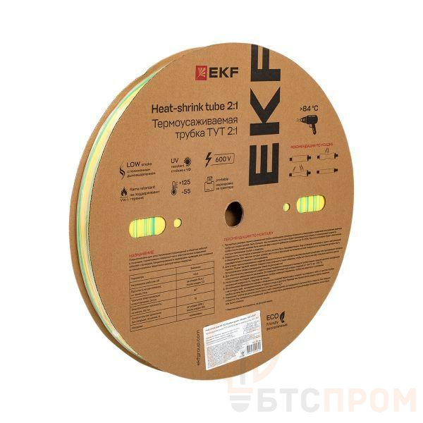 Трубка термоусадочная ТУТ нг 20/10 желт./зел. (уп.100м) EKF tut-20-yg фото в каталоге от BTSprom.by