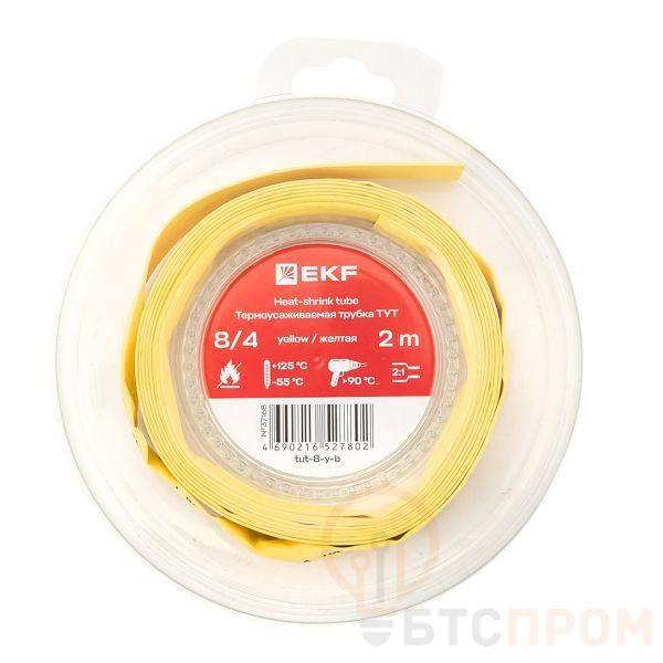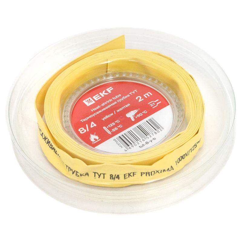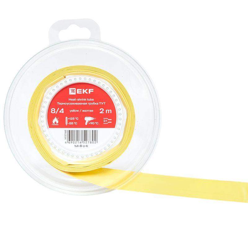 Трубка термоусадочная ТУТ нг 8/4 желт. ролик 2 м EKF tut-8-y-b фото в каталоге от BTSprom.by
