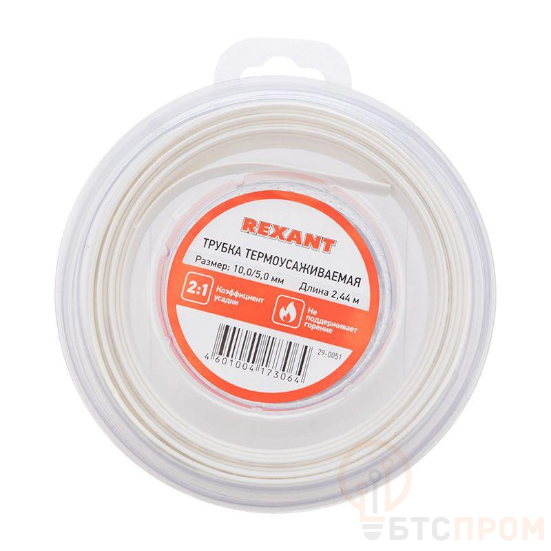 –Трубка термоусаживаемая 10.0/5.0мм бел. ролик 2.44м Rexant 29-0051