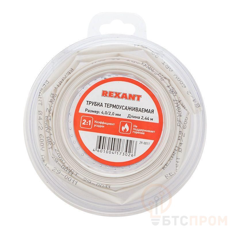–Трубка термоусаживаемая 4.0/2.0мм бел. ролик 2.44м Rexant 29-0011