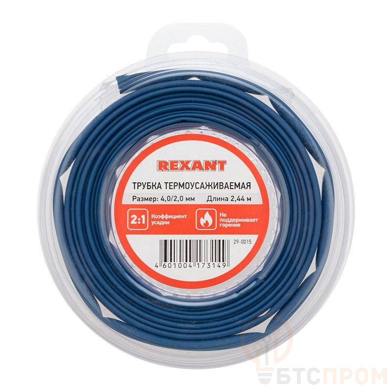 Трубка термоусаживаемая 4.0/2.0мм синяя. ролик 2.44м Rexant 29-0015 фото в каталоге от BTSprom.by
