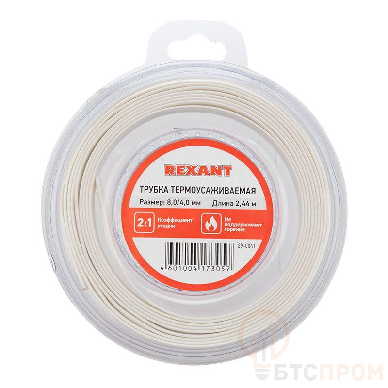 –Трубка термоусаживаемая 8.0/4.0мм бел. ролик 2.44м Rexant 29-0041