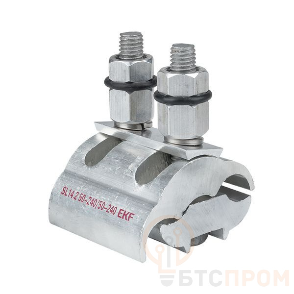 Зажим типа sl-14.2 предназначен для создания электрического соединения неизолированных алюминиевых или стальных проводов. Контакт между проводами осуществляется прижимной пластиной. При достижении момента, необходимого для создания надежного электрического контакта проводов, происходит срыв головки болта. Имеет два болта для увеличения прижимного усилия. Зажим устойчив к ультрафиолетовому и солнечному излучению, высоким и низким температурам, коррозии и агрессивным атмосферным воздействиям.