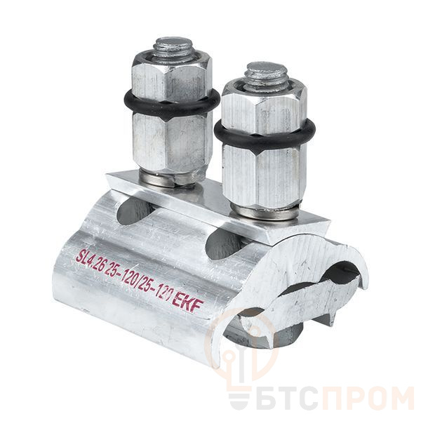 Зажим типа sl-4.26 предназначен для создания электрического соединения неизолированных алюминиевых или стальных проводов. Контакт между проводами осуществляется прижимной пластиной. При достижении момента, необходимого для создания надежного электрического контакта проводов, происходит срыв головки болта. Имеет два болта для увеличения прижимного усилия. Зажим устойчив к ультрафиолетовому и солнечному излучению, высоким и низким температурам, коррозии и агрессивным атмосферным воздействиям.